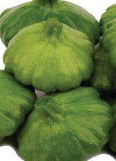 Matures 55 days. Small scallop squash, light in colour; small blossom end scar. Courtesy of Norseco