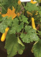 Matures 100 days. Bright yellow fruit with solid green handle, compact plant, tolerant to Powdery Mildew. Courtesy of Norseco