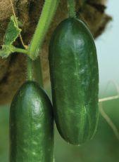 Greenhouse cucumber; early variety, vigorous growth; productive plant; dark green fruit, slightly ribbed. Organic seeds. Courtesy of Norseco