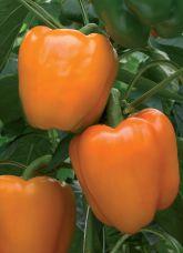 Matures 70 days. Quality peppers, orange colour, very uniform blocky fruits, thick walls, vigorous plant. Courtesy of Norseco
