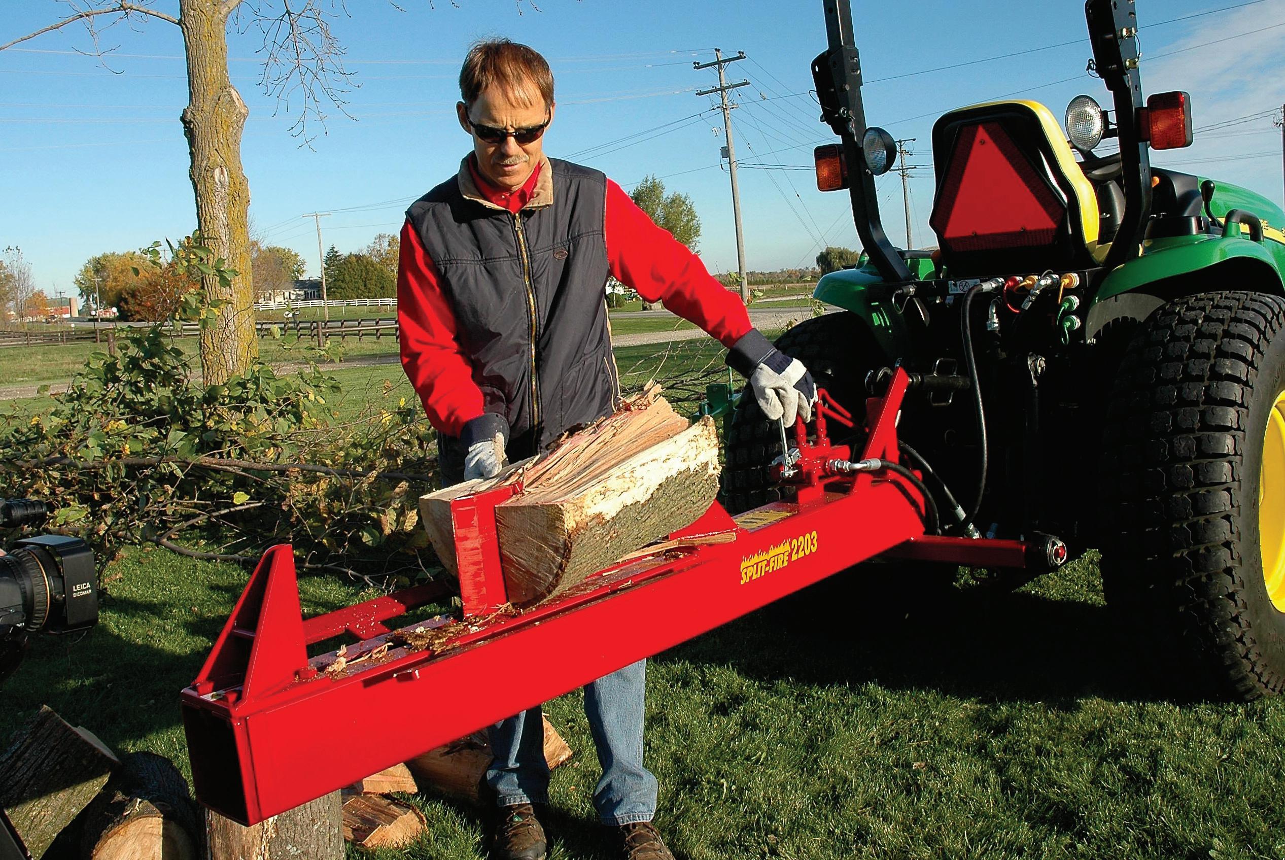 Split-Fire Sales Inc. has introduced the model 2203, a new three-point-hitch log splitter for farmers and rural equipment dealers. Featuring a unique two-way splitting action from the knife, which splits wood in both the forward and reverse stroke, the 2203 Split-Fire log splitter can be operated on small tractors with hydraulic flow rates of only four gpm operating at 2,700 psi or more. Operators don’t have to wait for the knife to cycle back before putting another log on as they can now split wood on the return stroke, making wood splitting fast and easy.