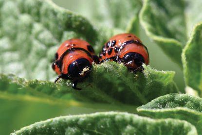 Colorado potato beetles having a snack.