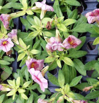 ‘Apollo Lovesong Mix’ is a pleasing mix of pink, white and pink and white bicolour flowers. The blooms, like the rest of the Apollo series, are very large, with thick, over-lapping petals, born on a densely branched plant habit. The effect is an eye-catching combination with fantastic garden performance. This mix may be used in pack production and on up to larger containers. floranova.com
