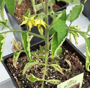 Photo 3 is an example where tomatoes in 4” pots became root-bound. This is a very generative tomato plant. The lower leaves are showing signs of high EC in the growing medium.