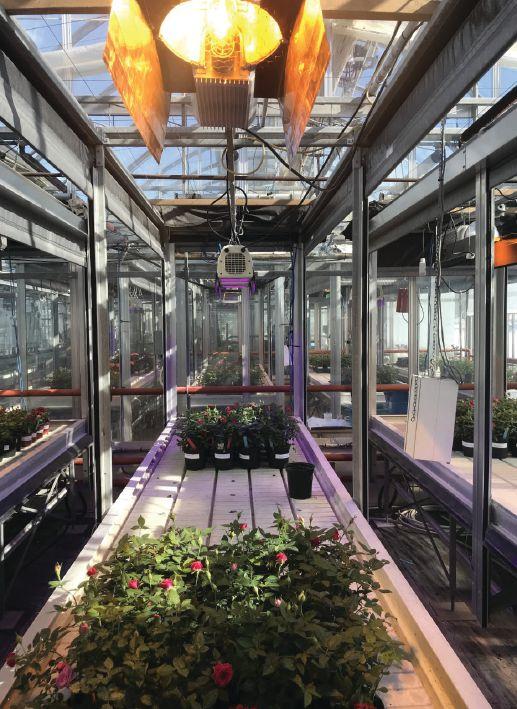 Comparing different LED spectrums (foreground) with HPS (background) for the production of potted ornamentals.