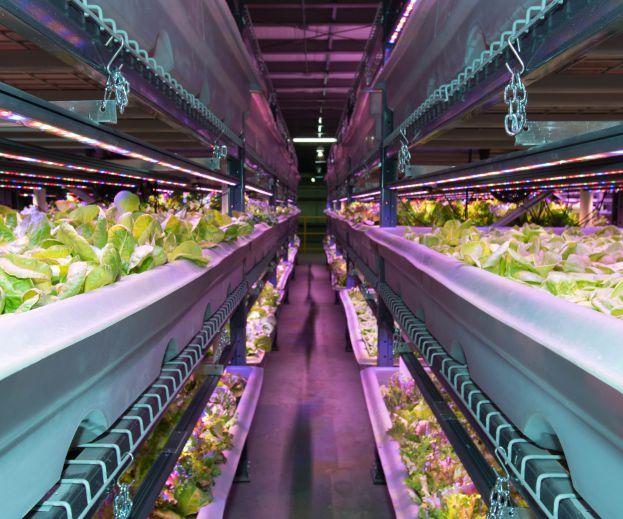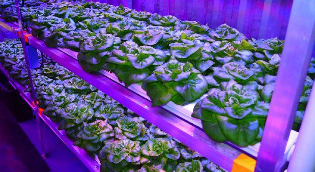 The facility provides a controlled indoor urban environment capable of growing a wide assortment of produce including microgreens, leafy greens and vine crops. Many of the crops can be grown and harvested within a seven- to 30-day cycle, providing fresh produce year round.