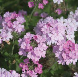 Bud, Calibrachoa Lia Spark Pink, Zinnia Zydeco Cherry, Petunia Supertunia Mini Vista Hot Pink, Petunia Supertunia Mini Vista Pink Star, Verbena Superbena Pink Cashmere. Petunia Picobella Rose Morn