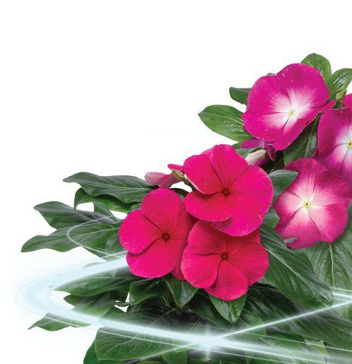 elegantly named ‘Cora.’ Cora XDR (3) selections have survived the screening by 20 different strains of Phytophthora nicotianae (the cause of aerial phytophthora blight) at Clemson University in South Carolina and have been shown to be highly resistant to 10 strains that are of major concern in the southern US landscape. There are 10 Cora XDR colours available; the colour red is not yet available in the XDR line but is still available as Classic Cora. In addition to phytophthora resistance, Cora vinca is known for its round blooms that exhibit little or no gapping between petals, short internodes and a free branching habit.