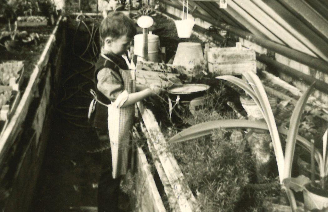 The author working in the remnants of the family greenhouse, circa 1966.