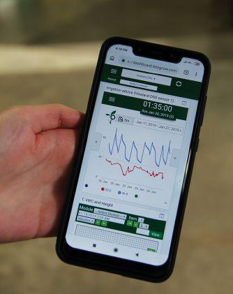 can be used. All the information is fed into the AI-training algorithm, hosted on the cloud-based management system LetsGrow. com. “LetsGrow will send an email or text message, and from there, the grower can trigger their own water,” says Ward.
