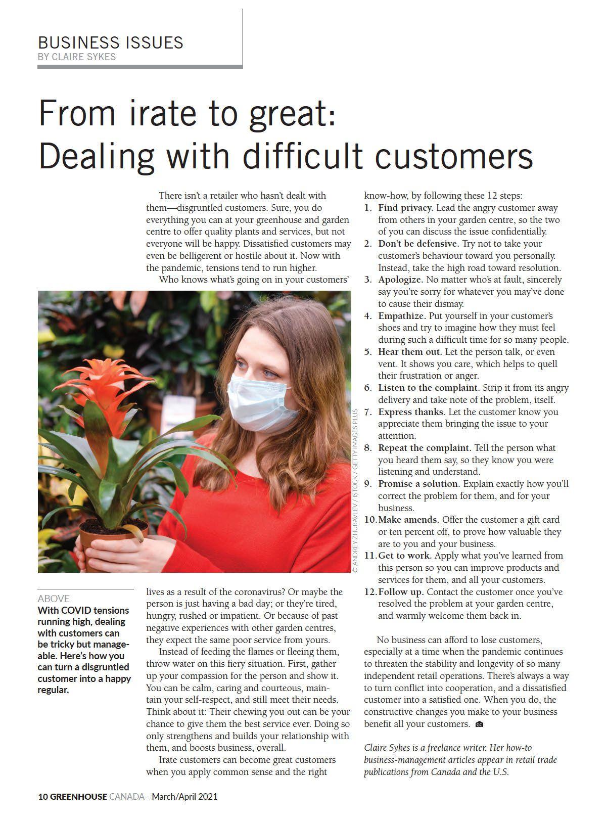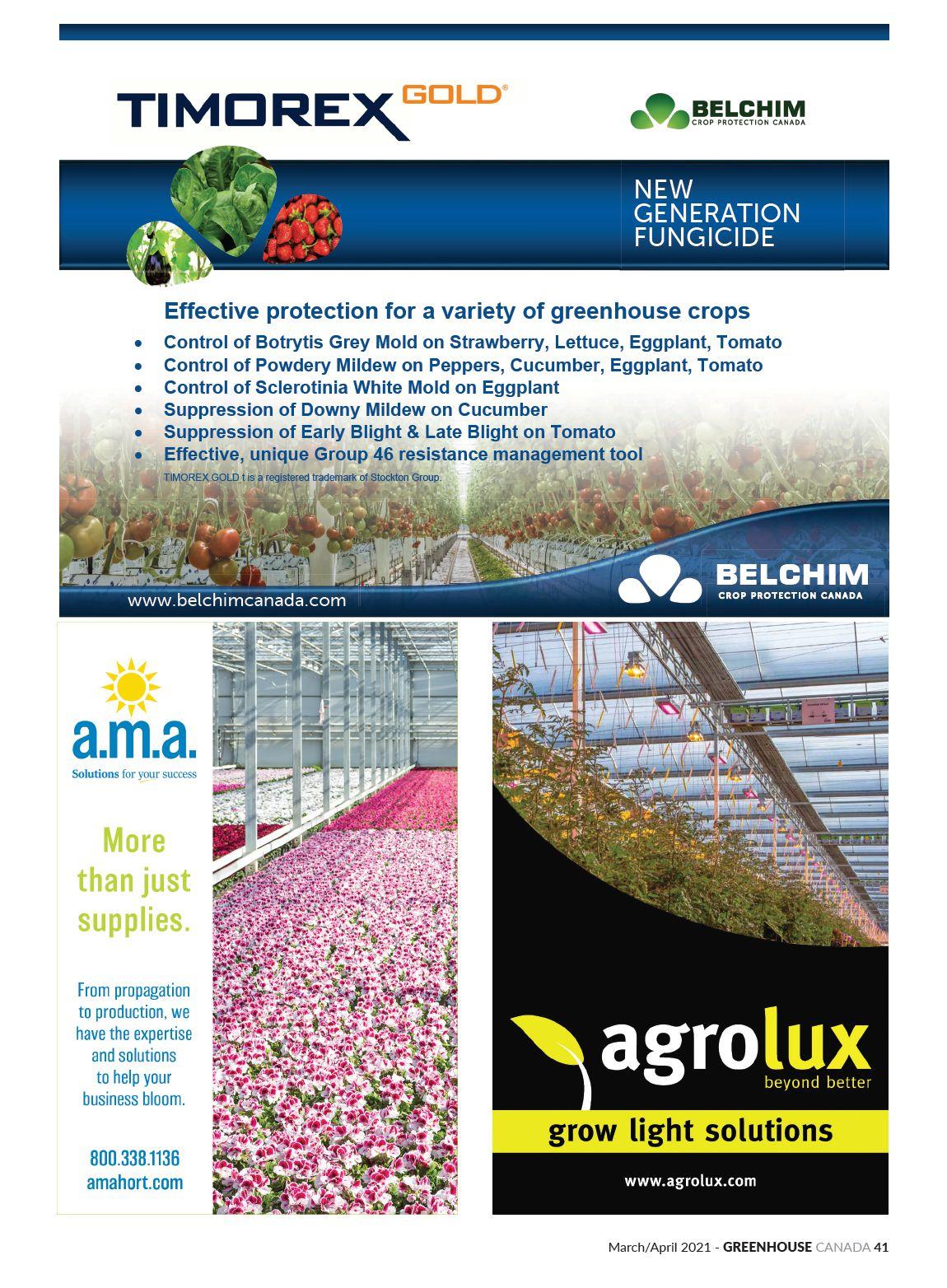CLASSIFIED RATES: Minimum order $75.00 or 84¢ per word, word ads must be pre-paid. CLASSIFIED DISPLAYS: $72.00 per column inch. GENERAL INFORMATION: Payment must accom- pany order. Copy required on publication close date. All advertising copy subject to the approval of the publisher. Send order and remittance to: Classified Dept., Greenhouse Canada, P.O. Box 530, Donly Dr. S., Simcoe, ON N3Y 4N5 Canada