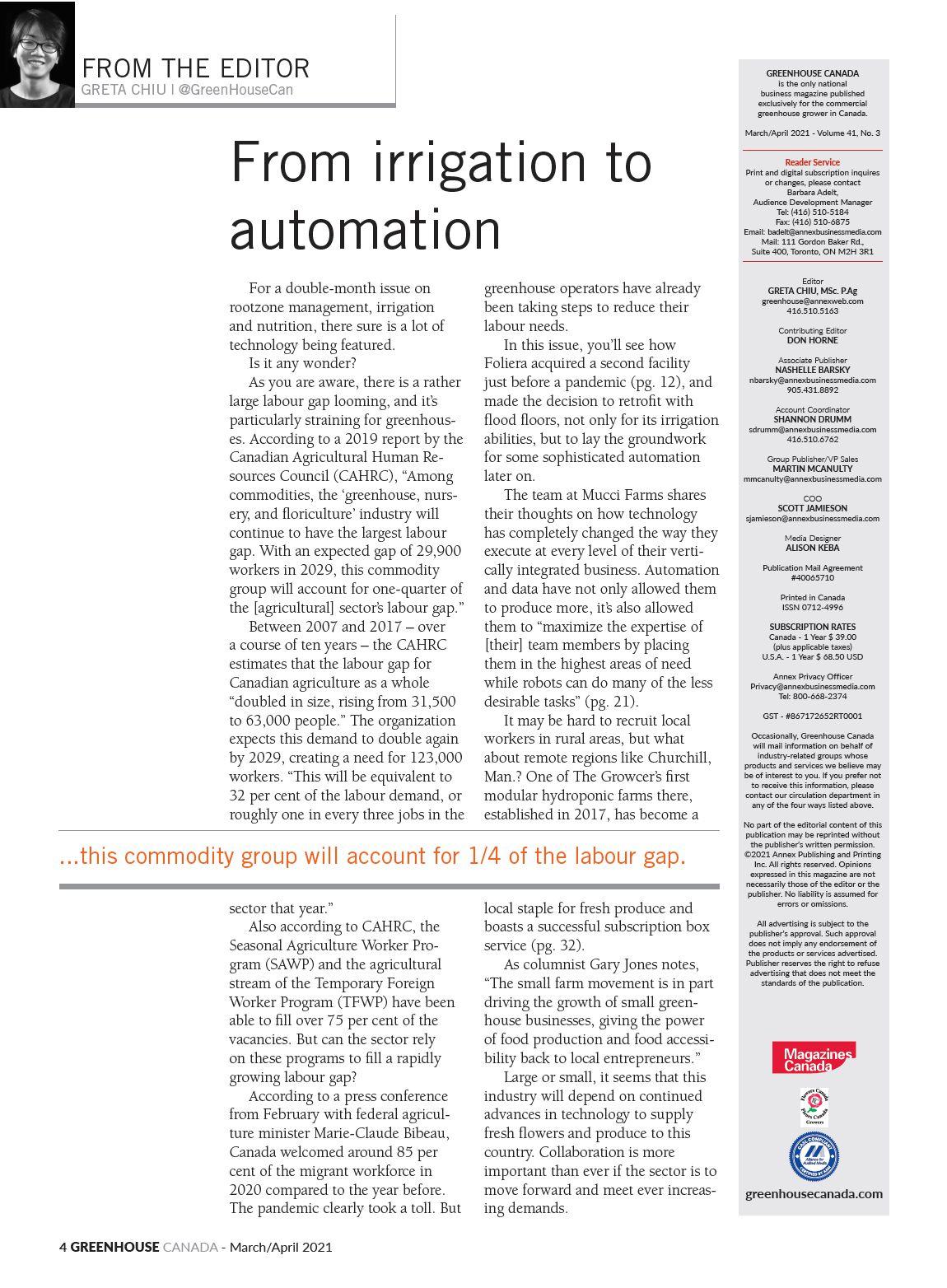 The entire automation system was built as a proprietary unit and greatly assists with efficiency in labour, cost, and production time. As the agricultural industry is predominantly located in rural regions with small populations, finding skilled and unskilled labour has been an ongoing challenge for all of Canada’s farming industry.