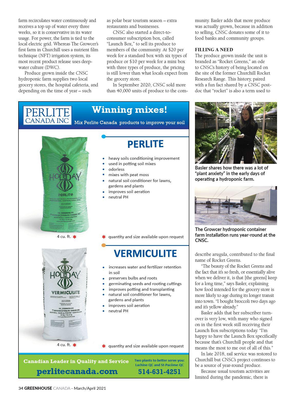 “Diffused glass on top of our greenhouses increases our production by eight per cent as a result of having much more uniform light throughout the plant canopy. This also creates favourable conditions by reducing stress on the plants. In fact, we can actually grow a more consistent product under lights in the winter because of minimal fluctuations in the growing environment,” says Mucci.