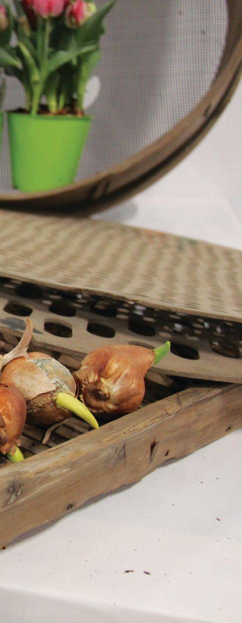pins that keep the bulb right side up. The trays are then filled with water, which gets refreshed multiple times throughout the forcing process to reduce the risk of disease. Plus, hydroponic forcing is quicker, which helps save on energy and generally leads to a more uniform crop for cuts.
