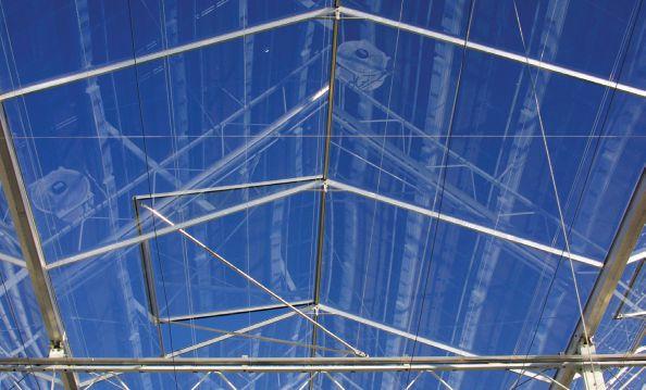 In general, when the total leaf area of the plant is about three times as big as its footprint on the greenhouse floor, all light intercepted by the plant is used for photosynthesis. In this case, the so-called LAI is 3 (Leaf Area Index, measured in m2 leaf area per m2 greenhouse area). When the light penetrates more deeply into the crop canopy, the leaves keep their chlorophyll content at higher levels, which results in a higher light use efficiency. This is further improved with an open plant architecture combined with the use of diffuse light.