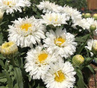 Amazing Daisies ‘Banana Cream II’ [25]: “This improvement on the classic ‘Banana Cream’ takes all the characteristics that gardeners love and kicks it up a notch. Just like the original, flower buds are lemon yellow and eventually brighten to creamy white. Improvements include being more floriferous, holding the yellow colour longer, a more appealing habit, and earlier to start flowering. Growers will love that the vernalization week requirements are much shorter — we recommend four to six weeks for best performance, although we have observed flowering without vernalization.”
