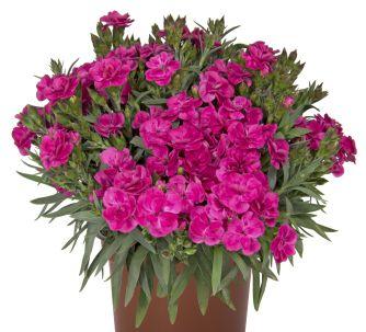 the original Pemán [21], plus three colours that are sports – Violet, Fancy Cerise, and Fancy Lilac. “That means it’s actually a family, not a series,” says LaCourse. All four appear identical, making them ideal in combos as duos or trios. “For the consumer, you’re getting two or three colours, but it looks like one plant.” Known for its high flower-producing trait, LaCourse says it’s almost impossible to see the foliage once the buds and flowers come in. “It has the carnation-type foliage, not your true perennial dianthus foliage, but it is extremely cold hardy.” He adds that Pemàn can be brought to flower in early spring and lasts almost the entire season. Buds survive the extreme heat as long as night temperatures remain cool. Zone 3.