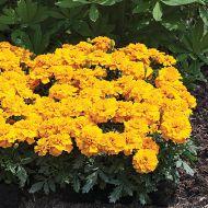 This Crested Marigold is one of five new colours in this series of heattolerant, extra-dwarf Tagetes patula nana. Resisting stretch, the