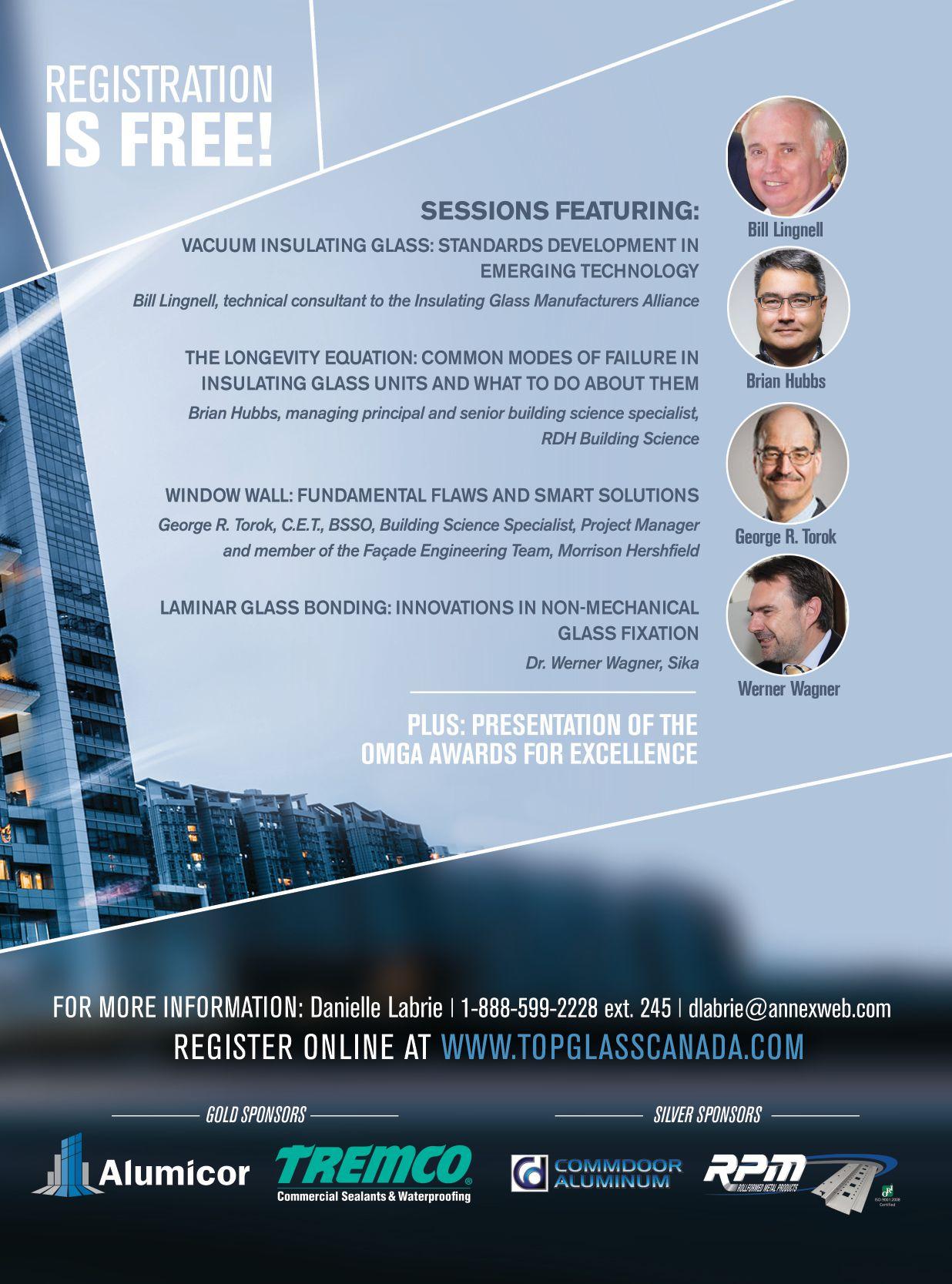 Welcome to our April issue where the big focus is on Top Glass, our education and trade event for the commercial glazing industry. Interest and participation in Top Glass has exceeded all our expectations so far, and if the registration numbers and booth sales are any indication, we are in for another great show this year. Many thanks to our sponsors – Alumicor, Tremco, Commdoor and RPM Rollformed Metal Products – and all of you, who give this event so much support. It’s always encouraging to see how much appetite for learning and networking is still out there in this industry.