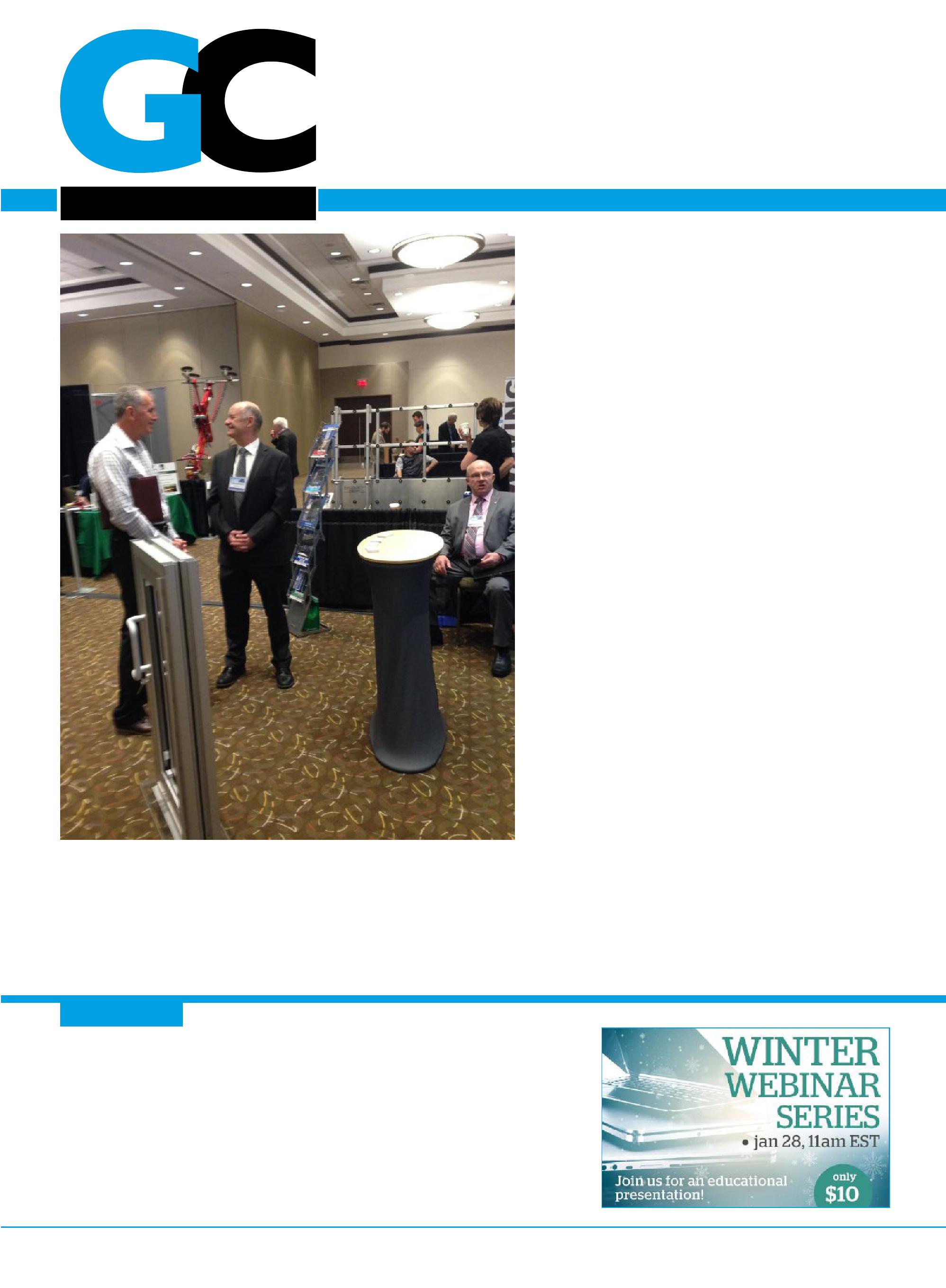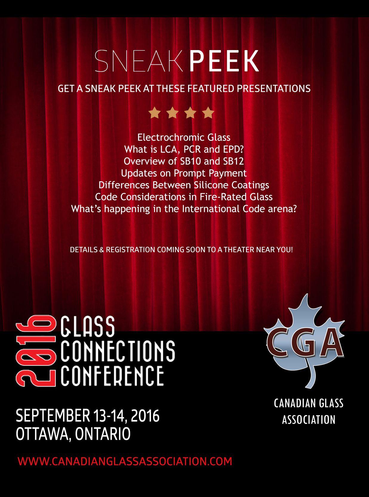 The CGA Glass Connections Committee has confirmed that Glass Connections 2016 will be held Sept. 13 and 14 at the Westin Ottawa. Topics will include code updates, electrochromic glass and sustainability. The CGA Technical Committee is meeting quarterly and recently released a Wired Glass Advisory. This committee will be representing CGA in its membership of the Glazing Industry Code Committee (GICC). GICC, which is a committee under the Glass Association of North America (GANA), advocates for industry code positions on energy, structural, and safety building codes.