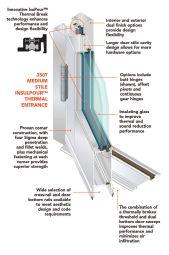 and interior and exterior dual-finish options for increased design flexibility. The new IsoPour technology merges the industry-proven pour and de-bridge thermal break with polymer isolator technologies. Both the door and the frame employ it to create assemblies with higher structural performance, enhanced energy efficiency and greater design flexibility. With sightlines that match non-thermal doors, the entrance is available in 250T narrow, 350T medium and 500T widestile options. The unique thermal break design allows for a wider selection of locking hardware than previous thermal entrance designs. Additionally, multiple cross-rail sizes and bottom rail heights are available, giving architects, designers and building owners more opportunities to bring their vision to life. Insulpour Thermal Entrances have undergone shock tube testing for blast mitigation and meet ASTM E1996 hurricane impact resistant requirements up to Zone 4 and Level D.