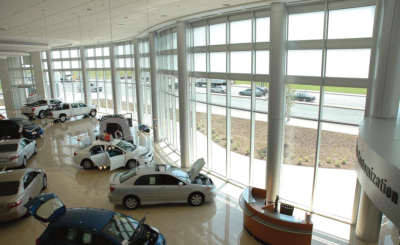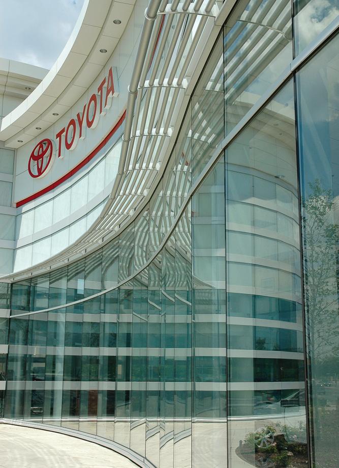 TOPLEFT: Designed by R.H. Carter Inc., and glazed by Fairview Glass and Mirror Ltd., the new Don Valley North Toyota dealership in Toronto, Ont., is a showcase in itself.