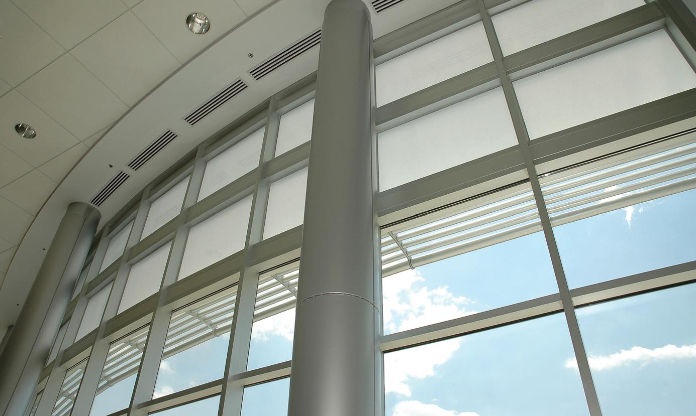 Solera T units cover 5,000 square feet along the top of the curtainwall and the rotundas. Solera is a line of translucent insulated glass units that fit into standard curtainwall or window systems.