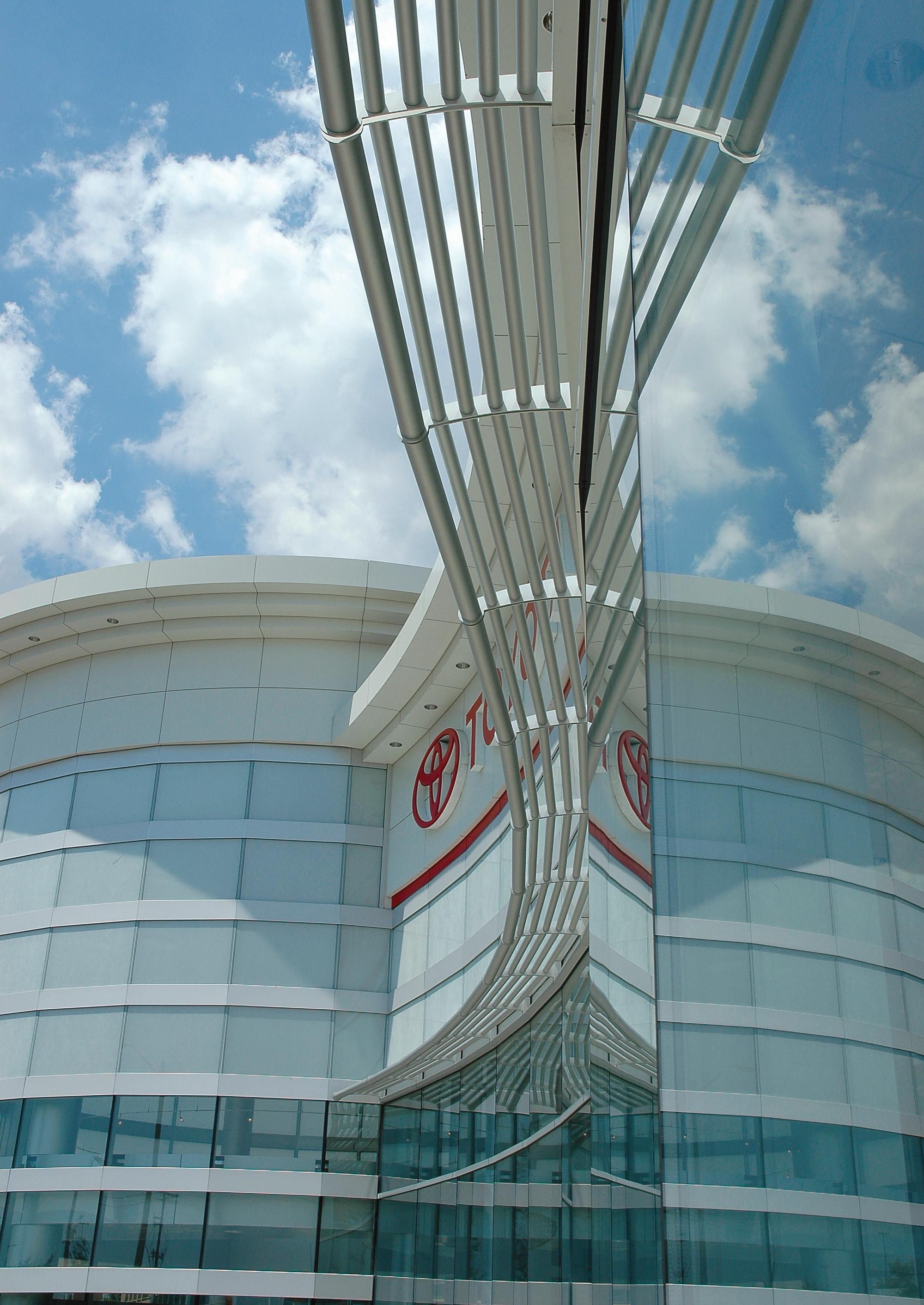 While most automotive dealerships are designed to showcase the vehicles inside the showroom the curtainwall structure that encases the showroom of the new Don Valley North Toyota dealership in Toronto, Ont., is a showcase in itself.