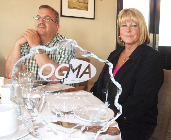 (now Oldcastle Glass) in 1997. Primo was general manager of the operation. After the sale she went with the new owners, helping Oldcastle establish a new plant location in Concord and a new sales benchmark of $7 million. In August, 2003, Primo left to start ProTemp Glass in partnership with Martintoni and Gianfranco DiMarco. By the time she retired in 2009, ProTemp’s sales were about $25 million annually. Primo thanked everyone at the OGMA and all her friends in the industry, saying she was honoured to be recognized.