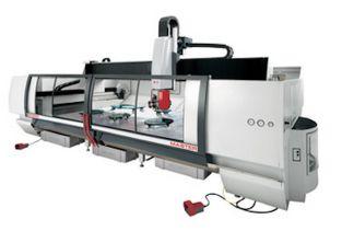 The Master 35 - 45 Series from Intermac represents the last evolution of five fully digital interpolating axes work centres. The increasing request for flexibility from customers all over the world has found an answer with these models, which combine the traditional quality of Intermac and its capability to execute all kinds of processing with precision, productivity and a high quality level of the processed piece. The machine control is based on a commercial Windows PC in order to grant full connectivity and a much easier use for the operator. The quality of Intermac’s products start at the design stage, where the most advanced CAD modeling systems simulate static and dynamic torque generated during machining operations, showing how to improve the machining process. High quality components, materials and numerous quality tests performed on each machine guarantee to customers a highly reliable machine. The five-axis head with the rotative infinite C axis and the tilting A axis from minus 90 to plus 90 degrees grants maximum flexibility and enables the execution of the most complex machining. The 14-position rotating tool change makes it possible to manually and safely load the tools even when the machine is working. As an option it is possible to equip the machine with an additional 14-position tool change. The machine’s base is made up of an extremely rigid structure with an aluminum worktable rectified to grant maximum flatness of the work area. This is an indispensable condition to get a perfect processing result. The axes move by recirculating ball screw at 60 meters per minute with accelerations permitting the heads to reach the maximum speed in a very short time. An automatic device to lubricate the guides and screws grants high reliability over the time of every moving part