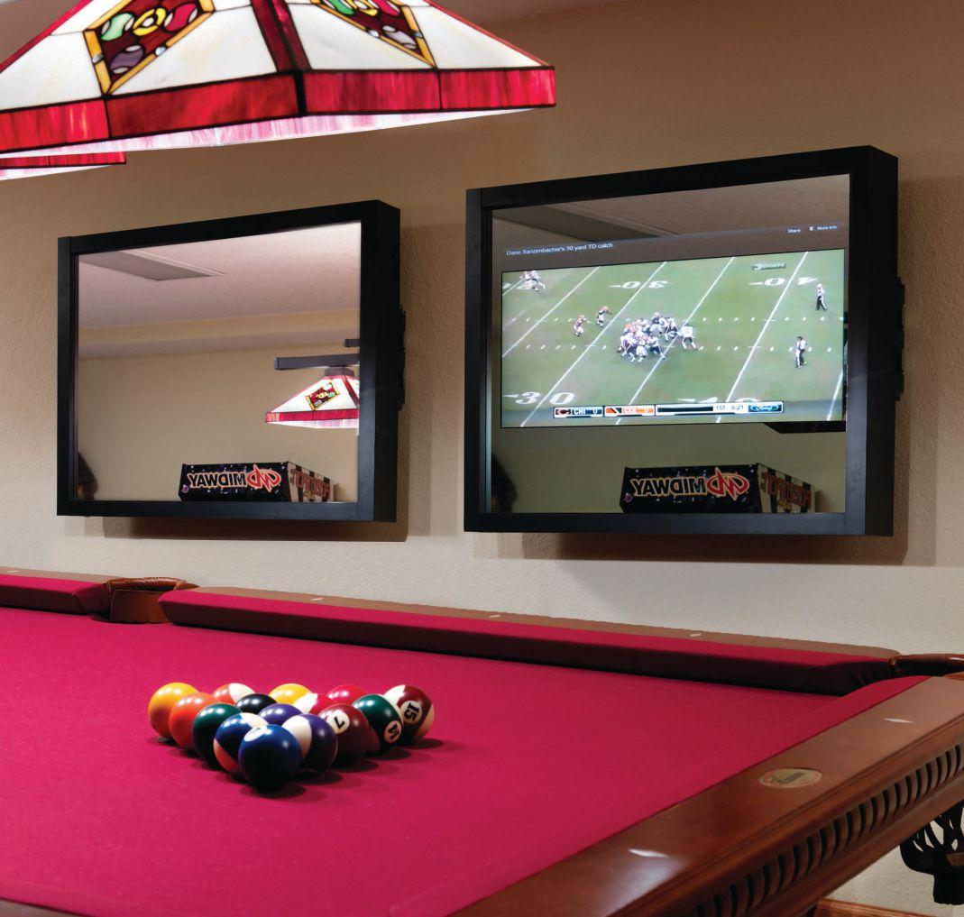 Pilkington MirroView™ 50/50 and Pilkington MirroView™ are ideal for concealing digital displays and video screens for commercial and residential applications.