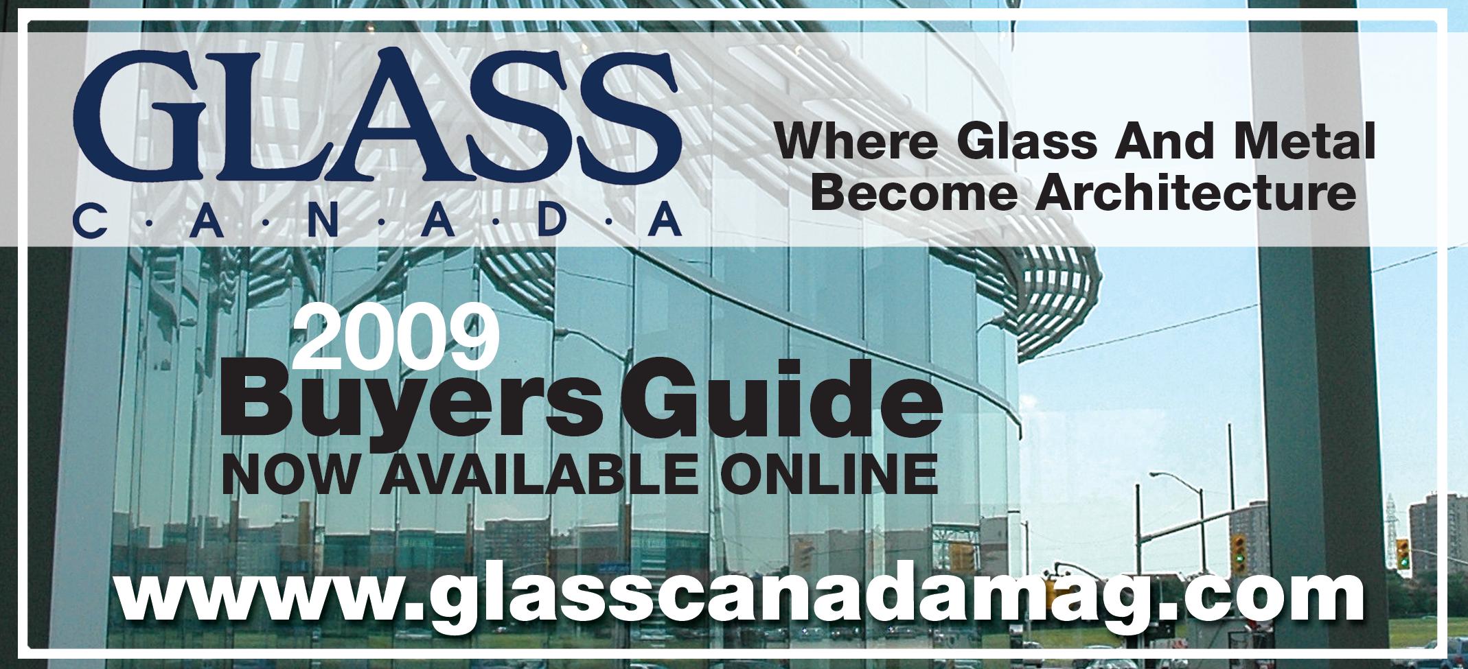 t is with pleasure we introduce the Glass Canada Buyers’ Guide for 2009. This directory is a compilation of companies who manufacture, supply or distribute the multitude of different products, materials tools and machinery for the production and installation of glass. It is the only such directory focused exclusively on the Canadian glass industry.