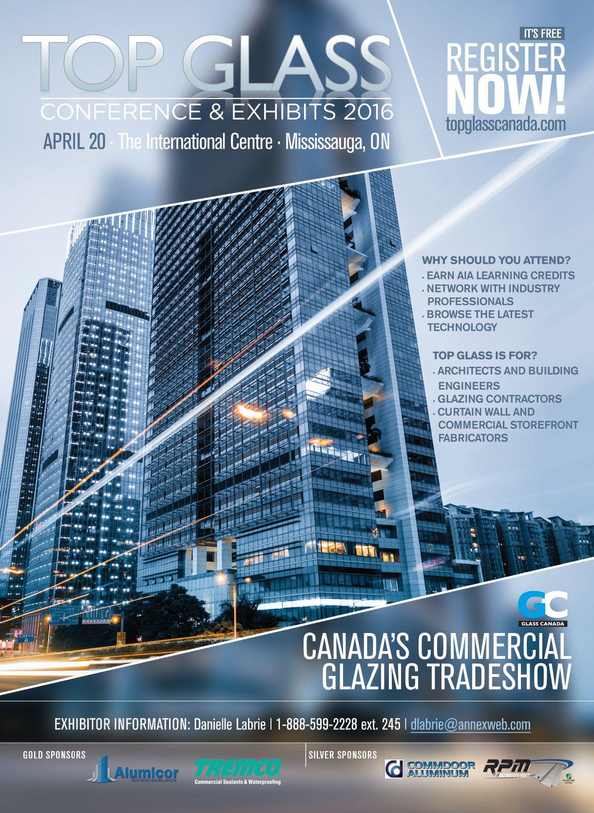 The educational seminar program for Top Glass 2016 has been released. The free conference for the commercial glazing industry will take place April 20 at the International Centre in Mississauga, Ont.