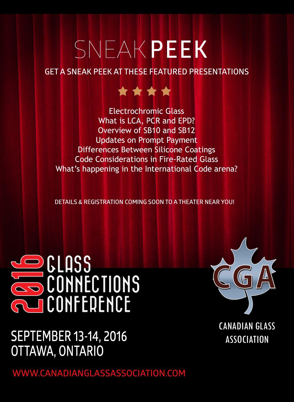 Inorder to work better in concert with the Ontario Glass and Metal Association, the Canadian Glass Association has agreed to move its Glass Connections Conference to Sept. 13 -14, 2016, still at the Westin Ottawa hotel in Ottawa. This move will keep Canadian glass industry events from overlapping, in addition to providing an opportunity for OGMA and CGA to work together on events surrounding the new conference date. The program is already laid out and plans to finalize the speakers are in the works. However, as a sneak-peek preview, below are some of the topics that will be addressed:
