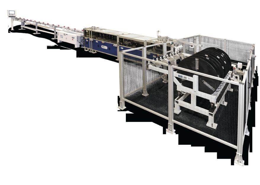 Installing automated spacer production doesn’t require a whole new shop. WorldSpacer lines, for instance, are configured in an 11-meter-long Ushape that is three metres wide, two meters high and weighs 7,500 pounds. No knocking out walls or special floors required. Electrical and air requirements are likewise not outside of the ordinary: 220-volt/15 kilowatt service and 0.82 KPA air supply.