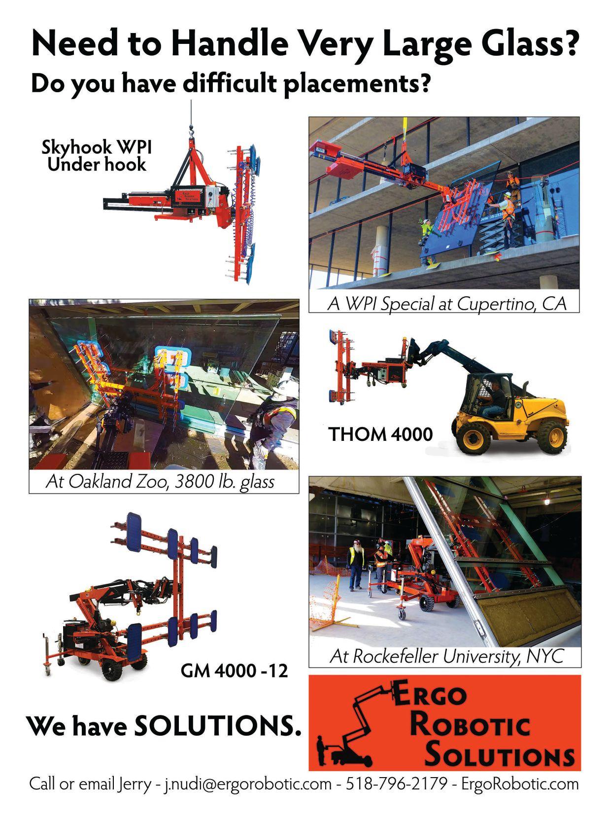 The window and glass manipulator from Kear Fabrication is the ideal solution to enable one employee to handle a job that would usually require two or more. Now glass fabricators can be assured that their investment is being handled quickly, efficiently and, most important, safely. Designed with the worker in mind, Kear manipulators can be fabricated to handle loads of more than 800 pounds and controls can be operated via radio or motion-activated. The head moves in a 340-degree circle with a brake that can only be released with the operator present. Swiftly move glass up, down, forward and reverse. It even has an option allowing the operator to pick partials up or lay them down horizontally.