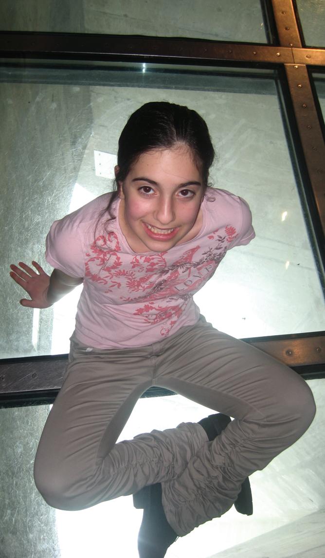 R Konstantina B. Skalkos sits on the glass floor that was installed by Stadia Industries in 1994 while visiting the observation deck at the CN Tower in Toronto, Ontario. Stadia’s experience with the floor helped the company design an elevator viewport for the CN Tower, the most recent attraction to this popular landmark.
