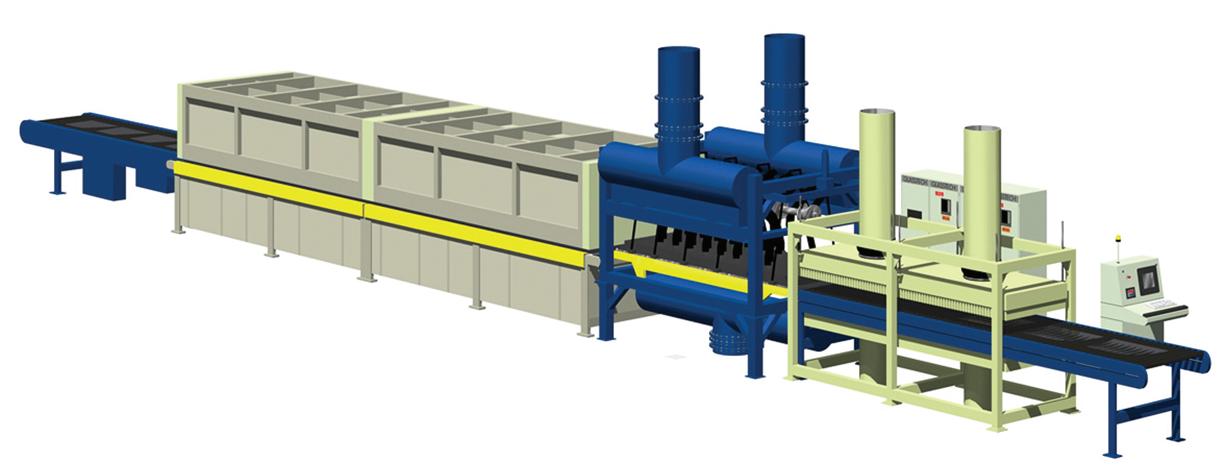 To temper glass with high efficiency coatings, Glasstech has developed convection heating concepts using either natural gas or electric heating. Its FCH2 forced convection system, fired by natural gas, is ideal for the efficient tempering of energy-saving low-E flat glass. The FCH2 can heat clear glass at a typical rate of 30 seconds per millimetre of thickness, and high performance soft-coat low-E glass at a typical rate of 33 seconds per millimetre. This reduced heating time for low-E glass provides for higher quality with less distortion and dramatically improves productivity and reduces processing cost.