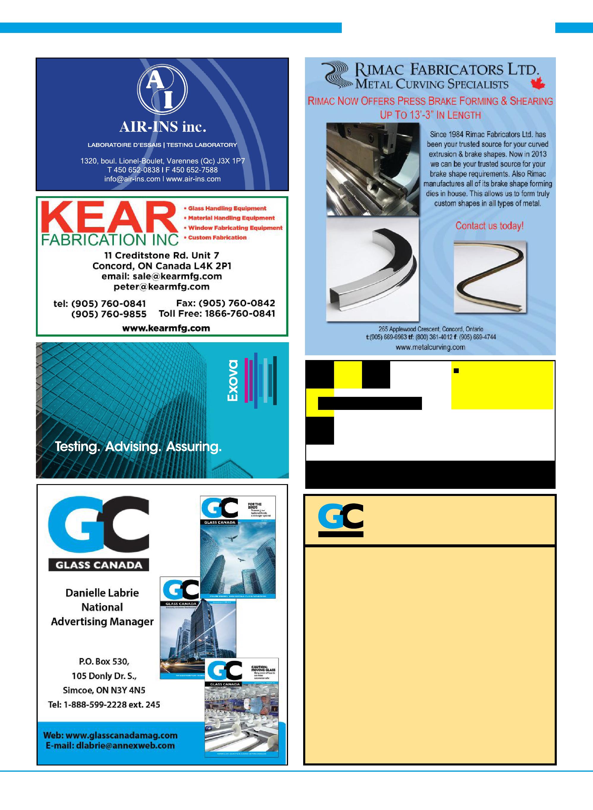 Publication Mail Agreement #40065710. RETURN UNDELIVERABLE CANADIAN ADDRESS TO CIRCULATION DEPARTMENT, P.O. BOX 530, SIMCOE, ON N3Y 4N5 email: subscribe@glasscanadamag.com