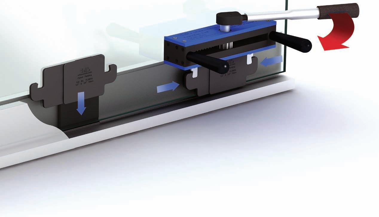 The TAPER-LOC™ Installation/Removal Tool compresses the Tapers together to lock the glass in place