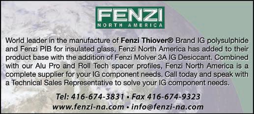 “Some raw material components used in insulated glass (IG) fabrication are being routed to Asia and other emerging markets, making North American fabricators scramble for their supplies. From our perspective, Fenzi has the ability to service our customers’ needs with their requirements for the IG components we supply.”