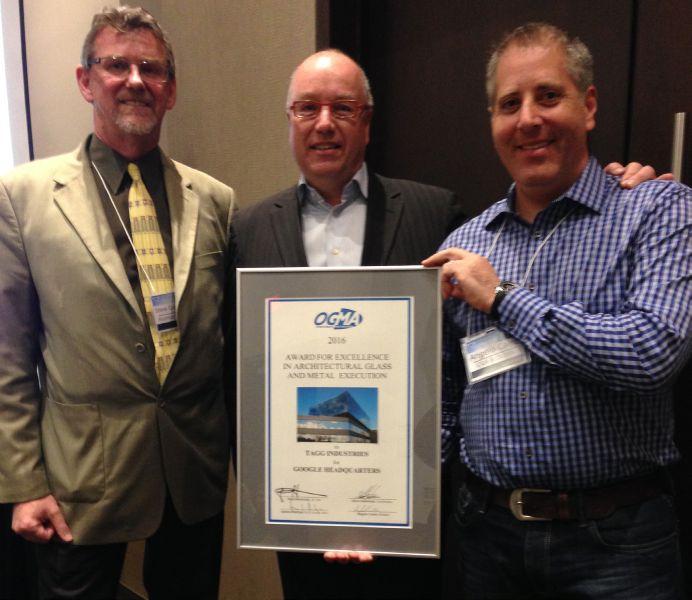 The Ontario Glass and Metal Association presented its Awards of Excellence to two Ontario companies at the Top Glass trade conference on April 20. TAGG Industries won the award for Excellence in Architectural Glass Execution, and Perkins Plus Will won Excellence in Architectural Glass Design. TAGG won for its work on Google’s Canadian headquarters in Kitchener, Ont., and Perry Plus Will won for Mohawk College’s David Braley Athletic and Recreation Centre.