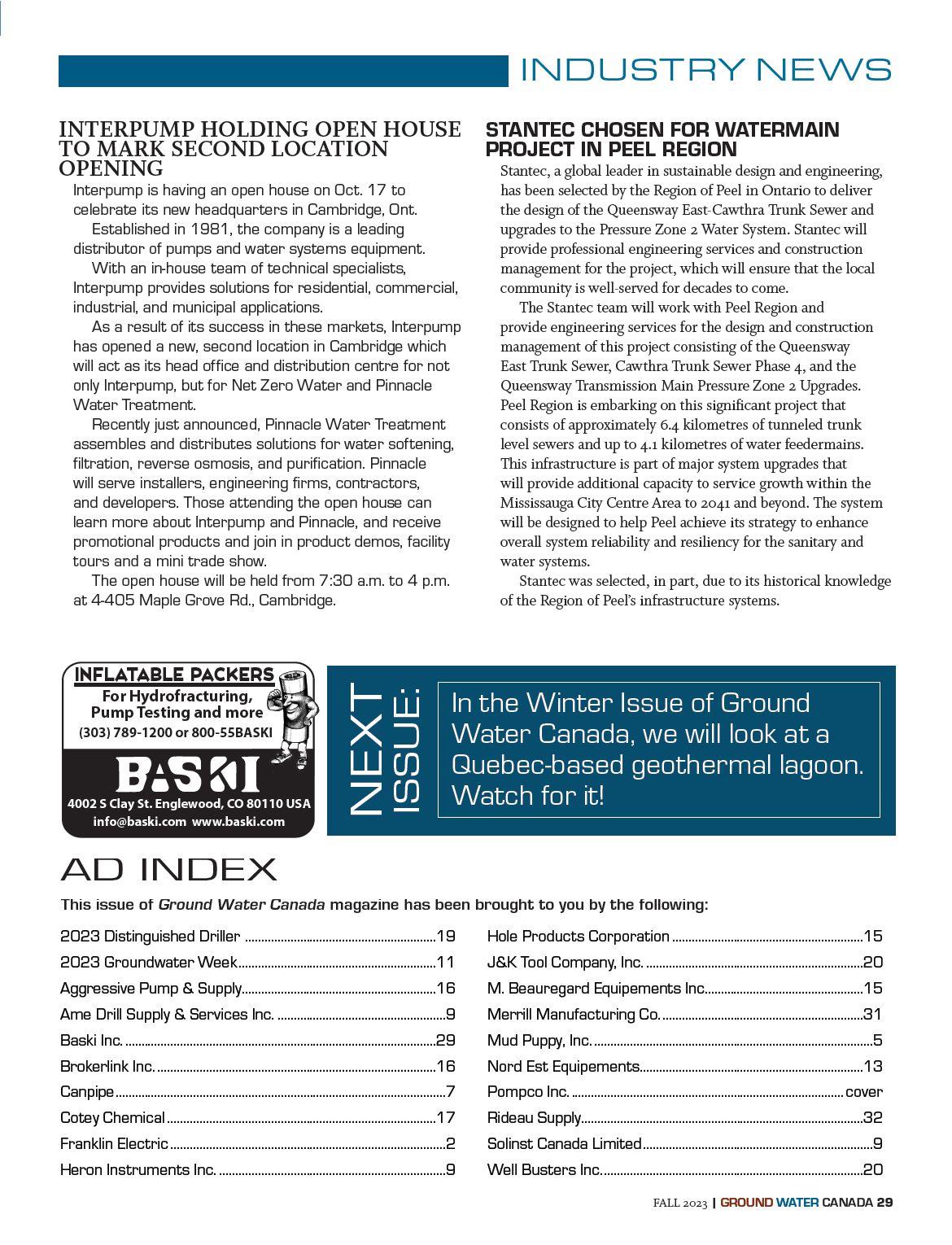 NEXT ISSUE: The next issue of Ground Water Canada will feature a story about a large geothermal lagoon in Quebec. Watch for it this winter. @GroundWaterMag groundwatercanada company/groundwatercanada