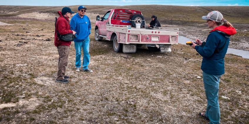 Piikani Nations Lands Department guides BGC Engineering and Living Lakes Canada to the area of Piikani Nation Land where part of the groundwater program will be piloted.