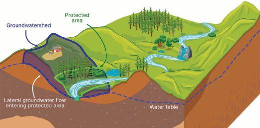 The research team mapped these groundwatersheds in approximately one-square-kilometre segments, first determining which direction the groundwater flowed, and then establishing where inadequately protected groundwater feeds into protected areas.