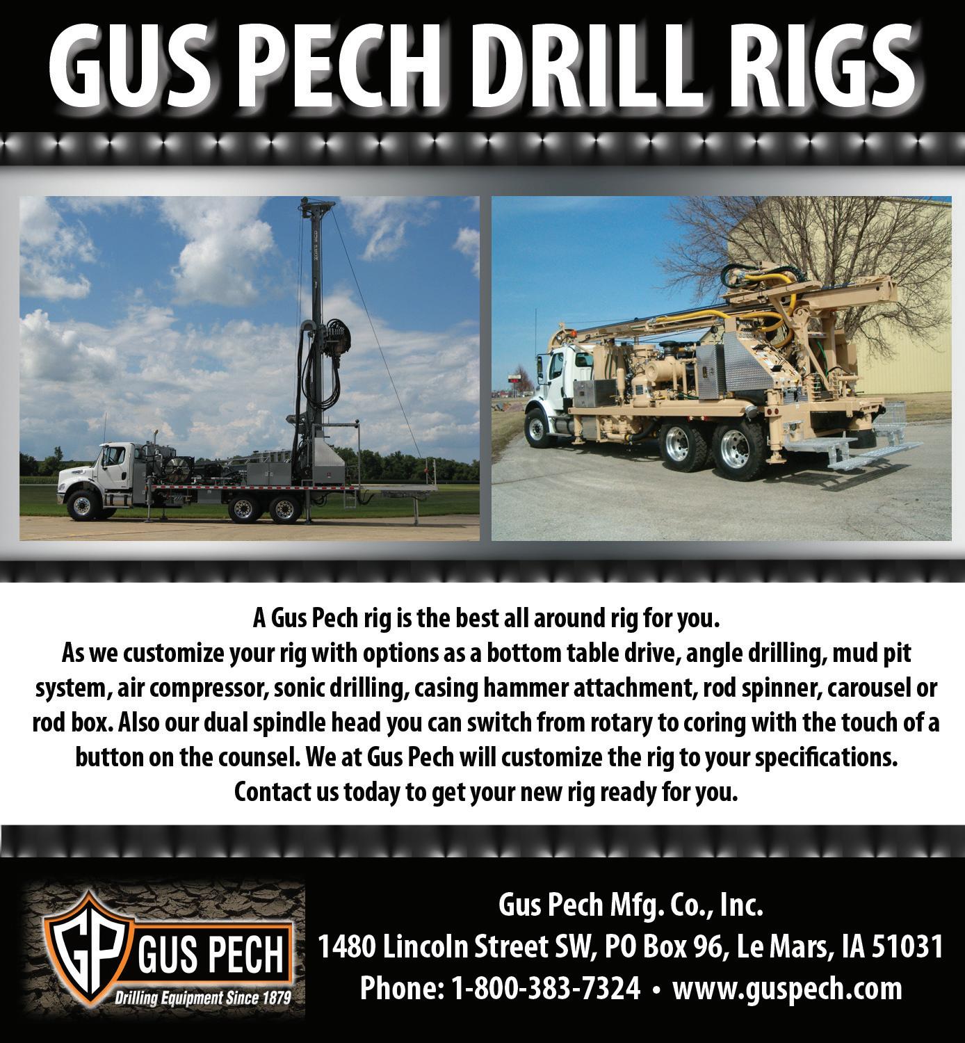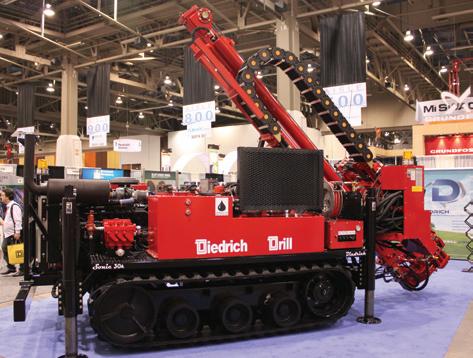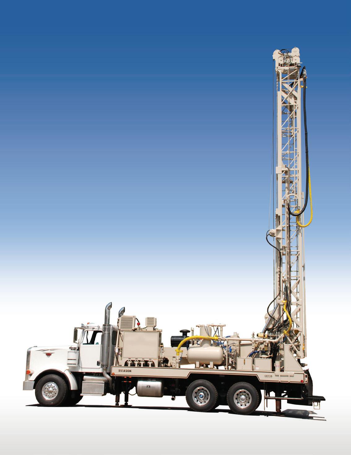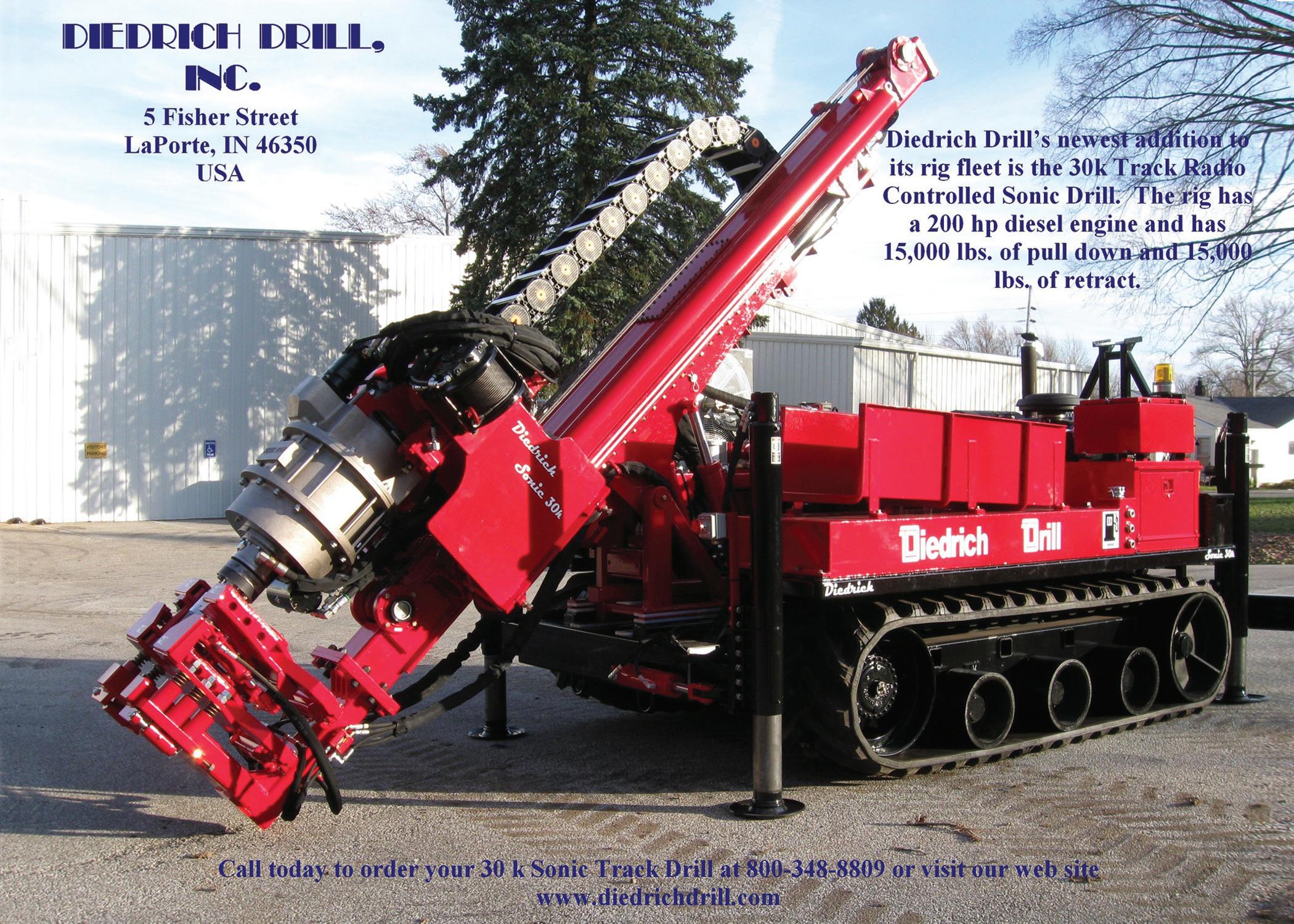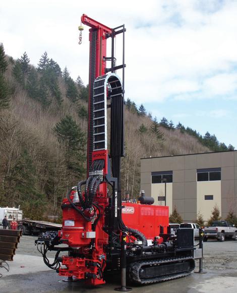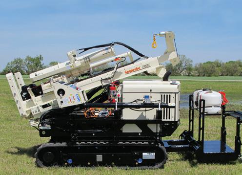 This rig has a 200-horsepower diesel engine with 15,000 pounds of pull-down and 15,000 pounds of retract. Diedrich’s sonic head creates up to 30,000 pounds of force and up to 120 r.p.m. of rotations. The rig also features a Bean pump and 20,000pound winch. Diedrich bills this rig as relatively quiet by industry standards. www.diedrichdrill.com