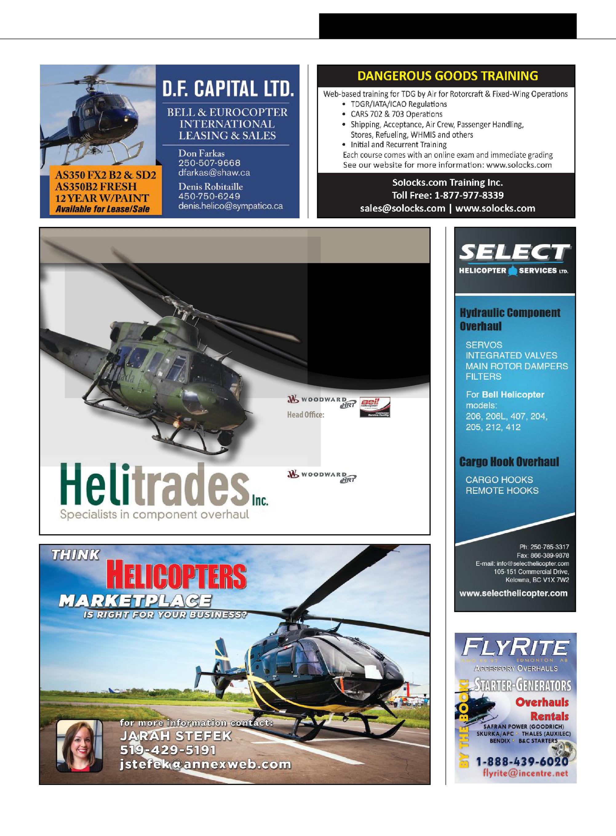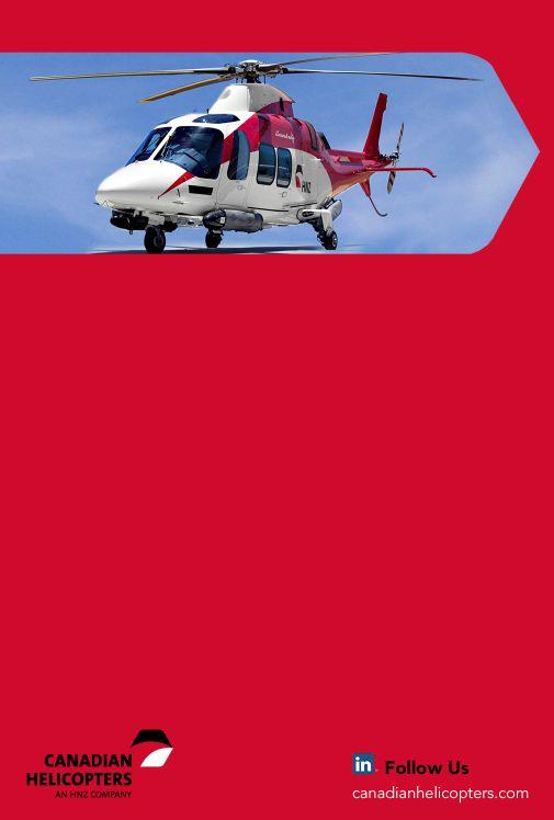Helicopters has added a new columnist to the fold. Corey Taylor, VP, Global Business and Product Development for Great Slave Helicopters, is a passionate safety advocate for the Canadian helicopter industry and an active participant at many national and international events. His inaugural column can be found on page 10. We would also like to thank columnist Michael Bellamy for his contributions over the years. The recently retired Bellamy was also a strong advocate for safety and quality control – his contributions will be missed.