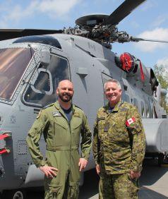 BELOW: Cory Kwasny (left), commanding officer at 423 Squadron, with the Sikorsky CH-148 Cyclone helicopter developed for the Canadian Armed Forces. (Photo: Jon Robinson)