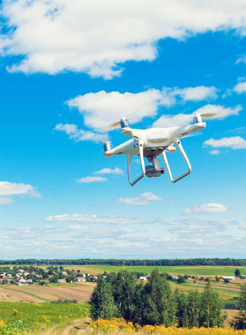Thanks to this research and development arm, The Sky Guys are currently refining their latest offering, the DX-3, which is essentially a fixed-wing, long-range drone with a 12.5-foot wingspan that can assemble and disassemble within five minutes. The drone is designed with proprietary ducted fan technology in the body so that the craft doesn’t require a runway, says Sax. The robust design also allows for 24 hours of flight in all types of weather and can be used for out-ofvisual-line-of-site operations. “We believe this is really a game-changing product that we’re bringing to market in 2018,” he says.