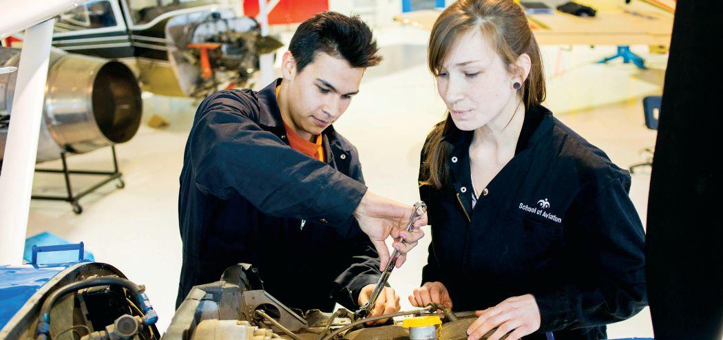 The Aircraft Structural Repair Technician program allows students to specialize in repair, upgrading and the modification of an aircraft. Graduates receive 10 months accreditation towards a Transport CanadaIssued Aircraft Maintenance Engineer’s Licence, Category S. The Aviation Technician – Aircraft Maintenance program trains students how to troubleshoot vital aircraft components and systems, including piston and turbine engines, electrical systems, hydraulics, and navigation and communication
